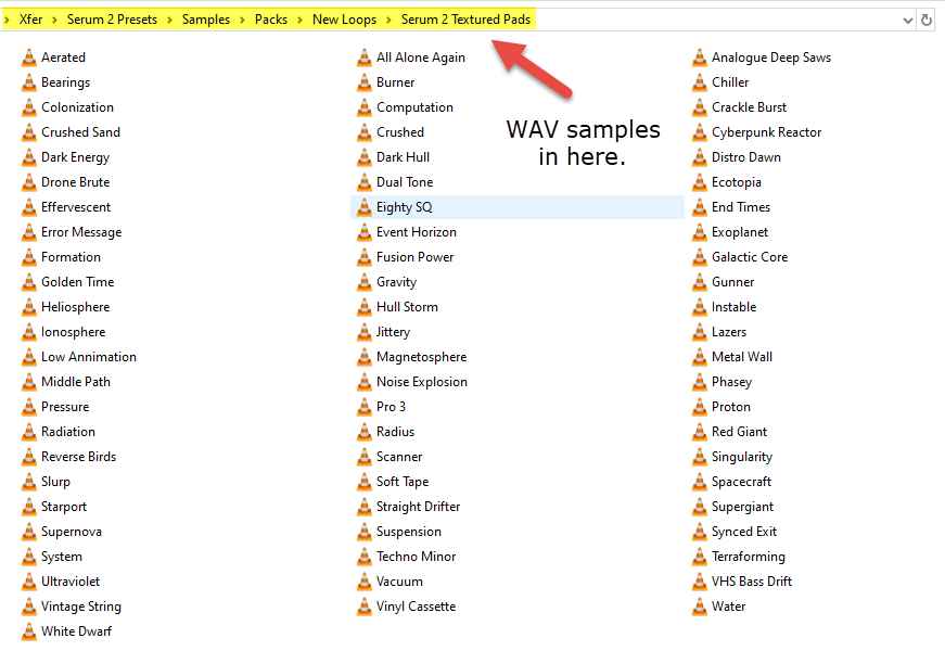 These Serum 2 textured pads and soundscapes are built from 70 custom audio files (259 MB) which you'll find in the "samples" folder. You can freely use these audio samples in your own serum presets. There's a wide range of noise textures, analogue synths, sci-fi ambience, digital noise, pad samples, and much more!